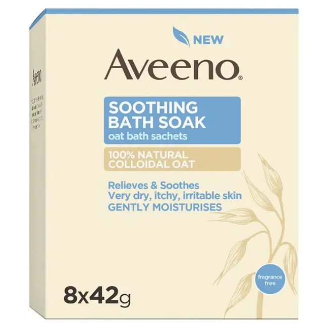 Aveeno Bath Colloidal Oatmeal Sachets are designed to soothe and relieve dry, itchy, and irritated skin, including symptoms associated with eczema and sensitive skin conditions. They help to calm irritation and support skin comfort during flare-ups or periods of dryness. The sachet formulation contains 100% natural colloidal oatmeal, which forms a protective barrier on the skin to help retain moisture and restore the skin’s natural balance. When added to water, it creates a soothing milky bath that gently cleanses while hydrating the skin. The single-use sachets provide convenient dosing and are suitable for regular use as part of a skincare routine for dry or sensitive skin. Commonly used for eczema, irritation, and general skin dryness, helping to maintain soft, smooth, and healthy-looking skin. Please note that images are for reference only. We can not guarantee that the item received will mirror the brand shown in the image unless the brand name is specified in the product listing.