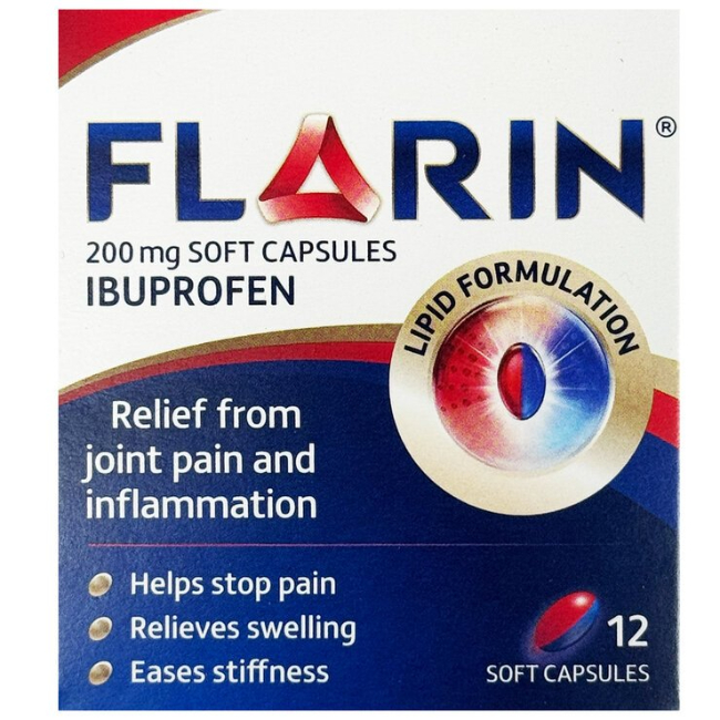 Flarin Capsules are used to relieve mild to moderate pain and reduce inflammation. They are commonly used for headaches, migraine, back pain, dental pain, period pain, muscular aches, and joint pain. Contain ibuprofen lysine, which is absorbed more quickly than standard ibuprofen to provide faster pain relief. Helps reduce swelling and discomfort while also lowering fever. A trusted anti-inflammatory painkiller for effective, fast-acting relief. Please note that images are for reference only. We can not guarantee that the item received will mirror the brand shown in the image unless the brand name is specified in the product listing.